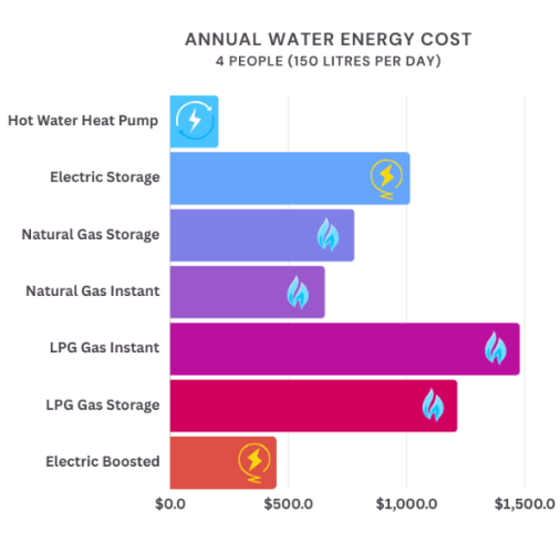 These new electric heat pump systems use up to 80% less energy than a typical electric hot water system. For an average Victorian household that equates to $700-$1,275 a year saved on energy bills!